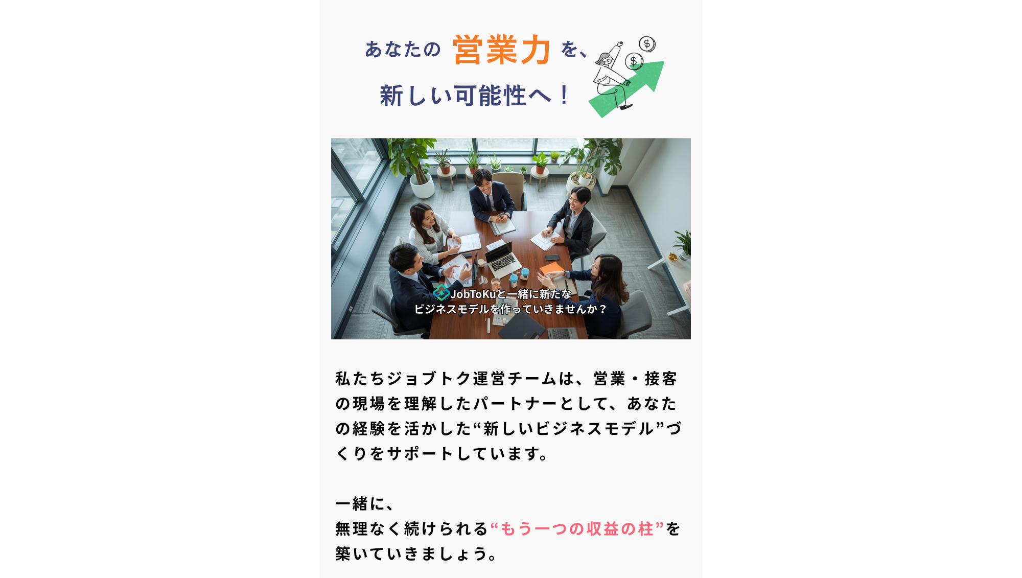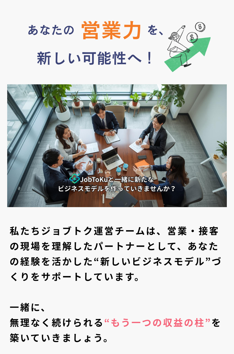 ー営業職、接客業のお仕事をされているフリーランス、個人事業主、会社を中心に自社商品の訴求とは別に